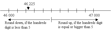 In the number 46 225, the hundreds digit is less than 5, so we round down to 46 000.