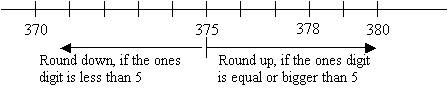 In the number 378, the ones digit is bigger than 5, so we round up to 380.