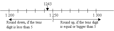 In the number 1 243, the tens digit is less than 5, so we round down to 1 200.