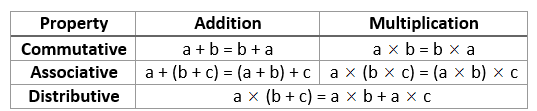 In these lessons, we will learn three basic number properties (or laws) that apply to arithmetic operations: Commutative Property, Associative Property and Distributive Property.